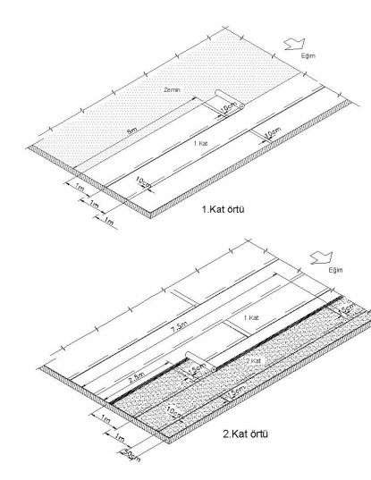 Teraslarda uygulanacak bitümlü su yalıtım örtüsünün üzerine eğer sert zemin, koruma betonu, çakıl vb. uygulanacaksa UV dayanımı olmayan bitümlü su yalıtım örtüsü uygulama sırasında açıkta bırakılıyor. Hava şartları gece gündüz sıcaklık değişkenliği nedeni ile birkaç gün içerisinde kırılma ve çatlamalar meydana geliyor ve bitümlü su yalıtım örtüsü su sızdırmazlığını kaybediyor. Bu tür uygulamalarda mekanik darbelere karşı koruma ve UV dayanımı için bitümlü su yalıtım örtüsünün üzerine ayırıcı keçe serilmeli ve en kısa sürede üzerine sert zemin, koruma betonu, çakıl vb. uygulanmalıdır. Eğimli çatılarda bitümlü su yalıtım örtüsü uygulanacak ise mutlaka 2. Katı UV dayanımlı mineralli bitümlü su yalıtım örtüsü, şıngıl vb. vb. çatı kaplama malzemesi ile kaplanmalıdır. Mineralli bitümlü su yalıtım örtüsü uygulamalarında boyuna binilerde enaz 10cm lik bini yapılarak uygulandığında ek yerleri siyah bitüm şerit şeklinde görünmektedir. Estetik açıdan bir bütünlük sağlamadığı için mineralli bitümlü su yalıtım örtüsü uygulamalarında boyuna binilerde10cm bini, 0,5cm mineral üzerine gelecek şekilde uygulanması önerilir. Yine boyuna binilerde 15cm bini, 0,5cm mineral üzerine gelecek şekilde uygulanması önerilir. Böylelikle siyah bitüm lekesi yerine mineral görüntüsü elde edilir.