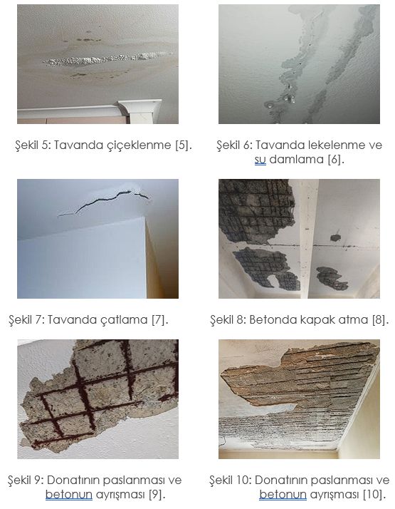 Teras çatılı binalarda yalıtımın altına giren su, yüzeysel lekelenmelere, küflenmeye, çiçeklenmeye, yapısal beton içerisindeki donatının paslanmasına, betonun çatlamasına ve beraberinde sıvanın çatlamasına, betonun kapak atmasına ve betonun tabaka halinde ayrışmasına, neden olabilir [1……10].