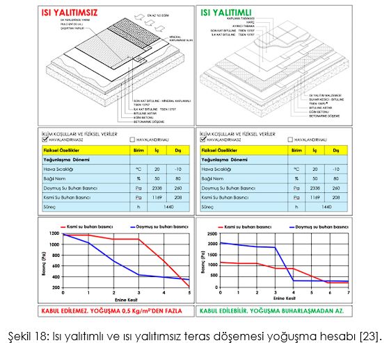 Teras döşemesi altında ısı yalıtım malzemesi kullanılarak yoğuşma önlenebilir [23].